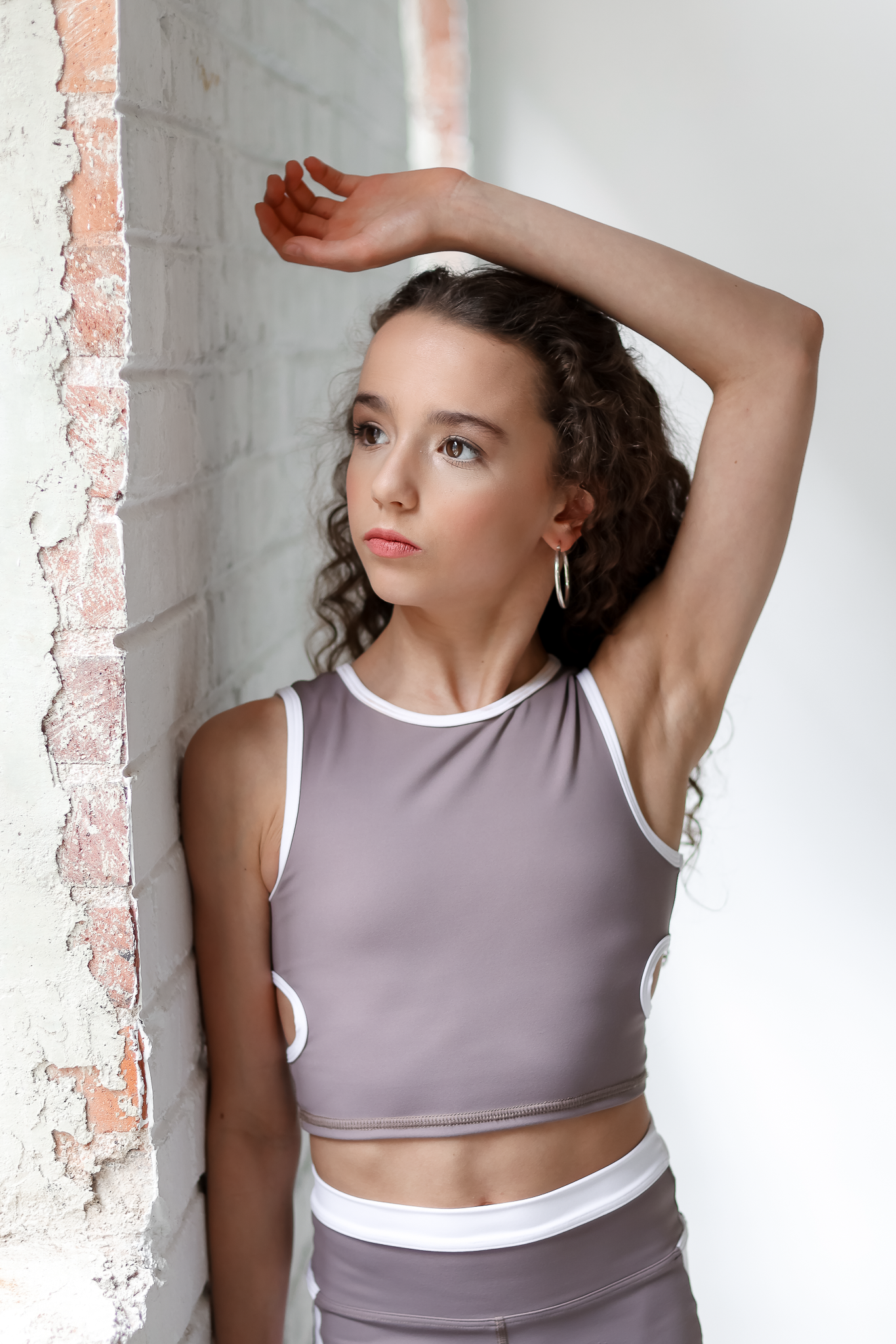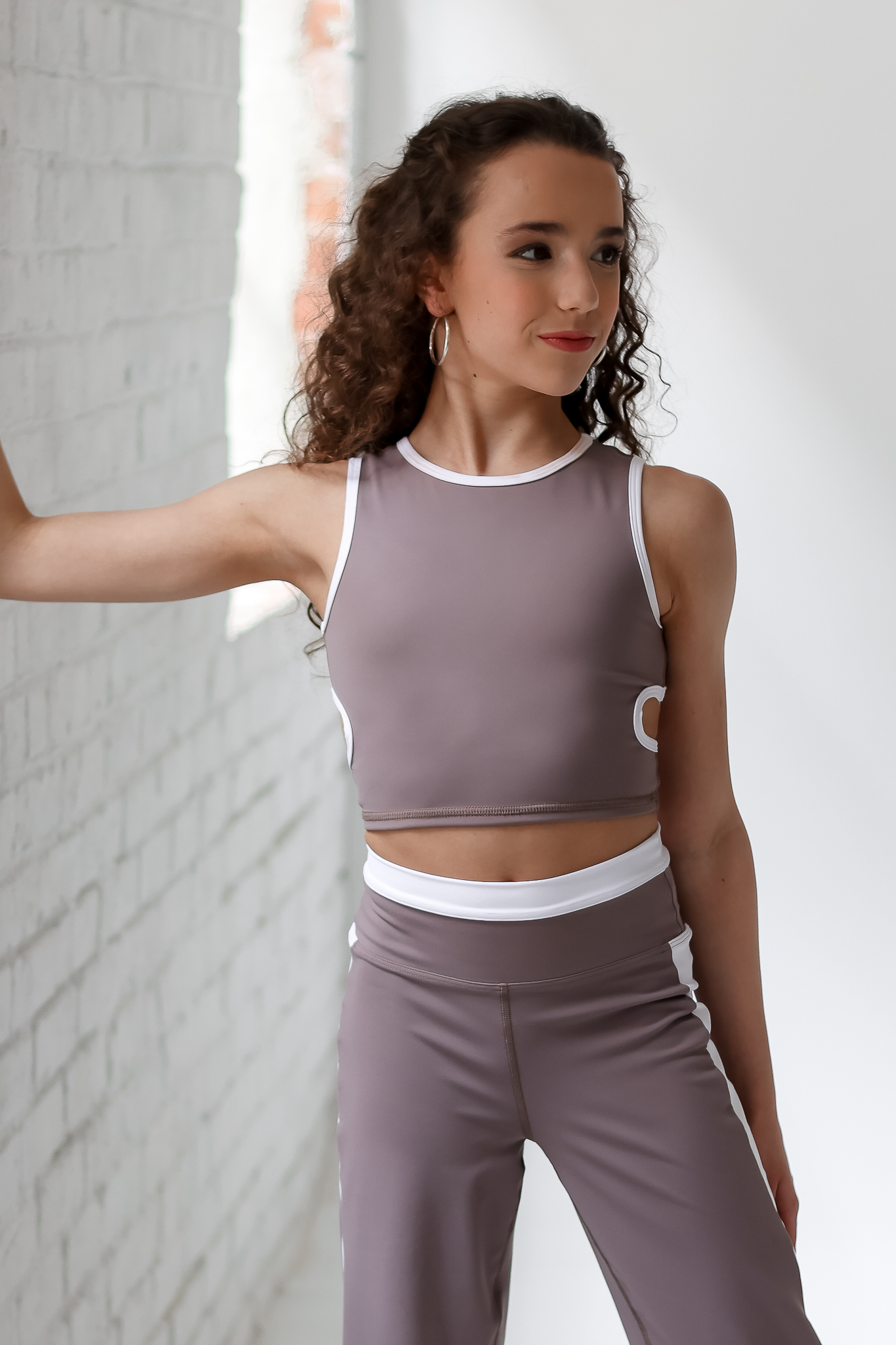 This fun, athletic cropped tank top is just what you need to give you that extra boost. The flattering high-neck cut and unique back detail make this new top one of a kind. Wear it anytime paired with jeans or jean shorts for maximum style on and off the dance floor! BE the girl who decided to Just. Go. For. It.