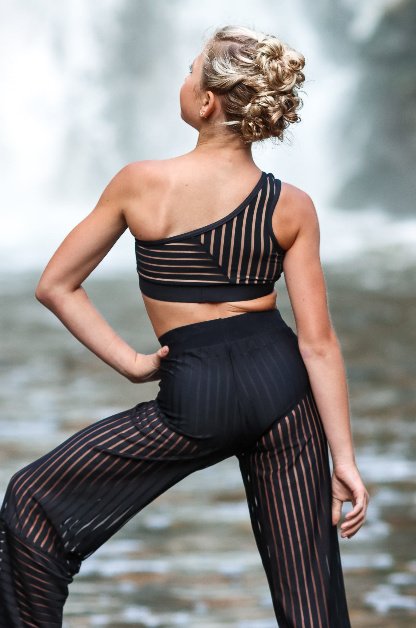 Offered in two distinct colorways, we created a look like none other that will command unparalleled attention in any setting. This sporty, sophisticated, and trendy three piece set includes a single shoulder crop top, solid colored brief and a wide leg, ankle length pant. The top and pant feature a playful 90° rotation in the fabric's stripe, as a reminder that you are unparalleled.