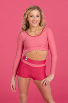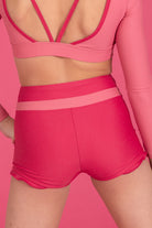 The My Girl Shortie is all-things girly in the best possible way. Featuring a gentle ruffle at the hemline, high-waist design, available in 9 fabulous colorways, the newest one being Pinky Promise! These midi length dance shorts are perfect for everyone - whether you are 3 or 13.