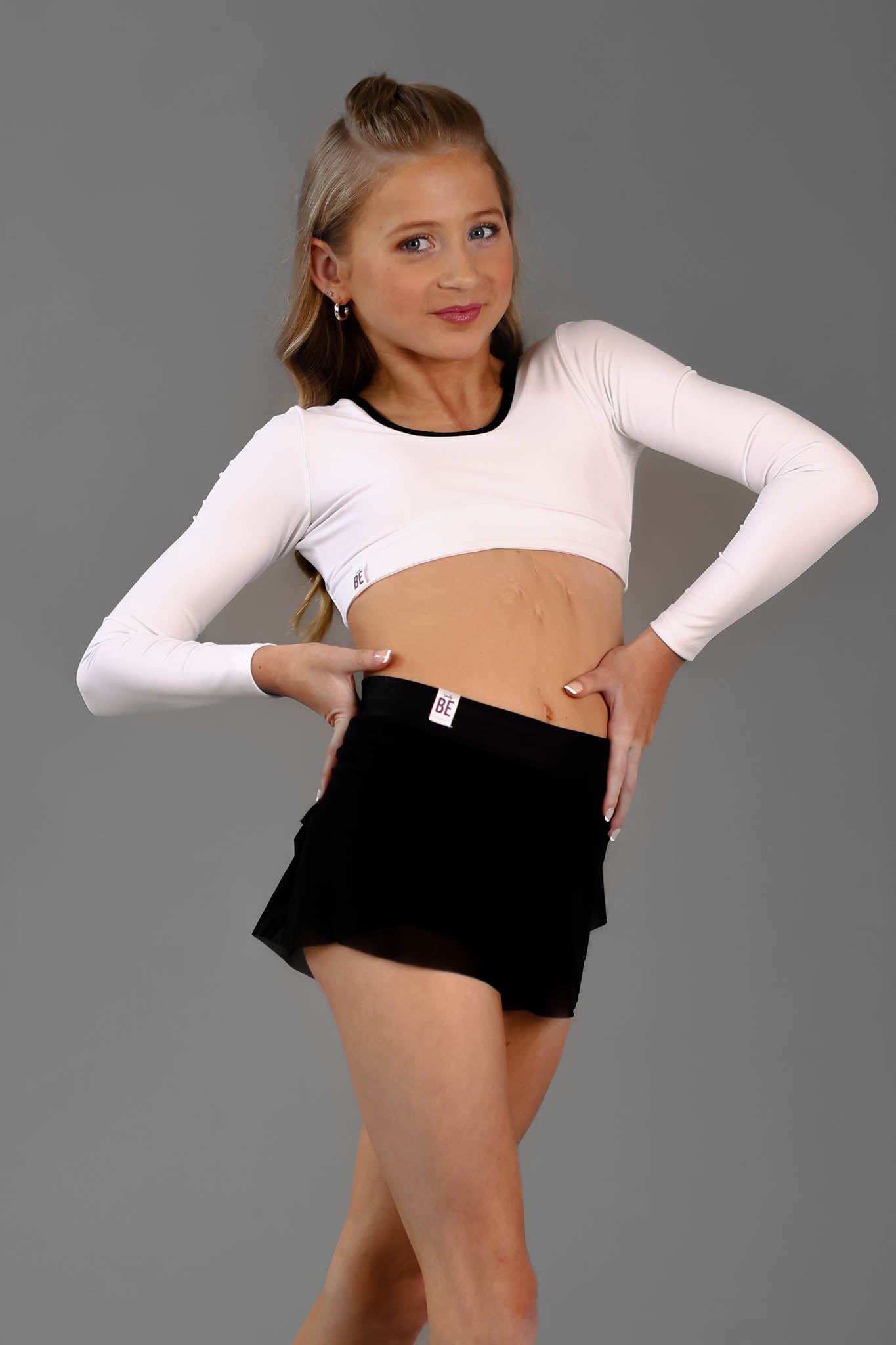 Cuteness overload! The all-mesh Shimmy Short is an adorable alternative to the traditional ballet skirt and a perfect addition to your convention or studio wardrobe. Lightweight and super comfy, the Shimmy Short is made of stretch polyester mesh and features a form-fitting waistband, a playful layered design, and a flattering flowy cut. Perfect to throw on over your briefs or booty shorts. Please note: Shimmy Shorts are not lined and must be worn over dancewear.