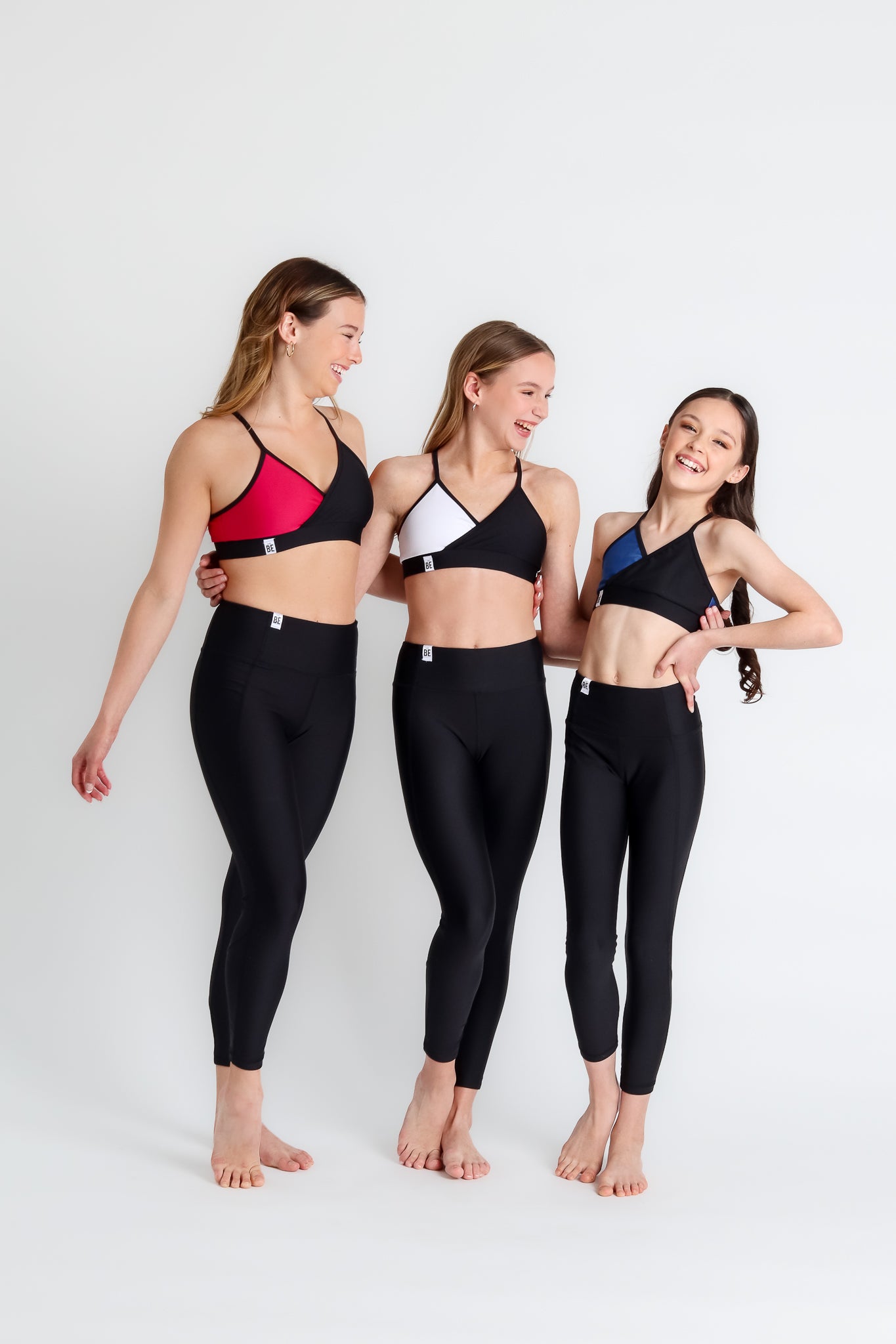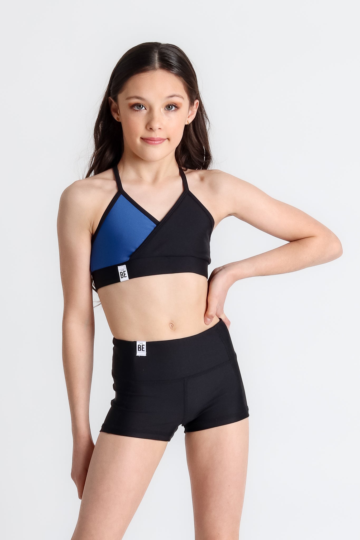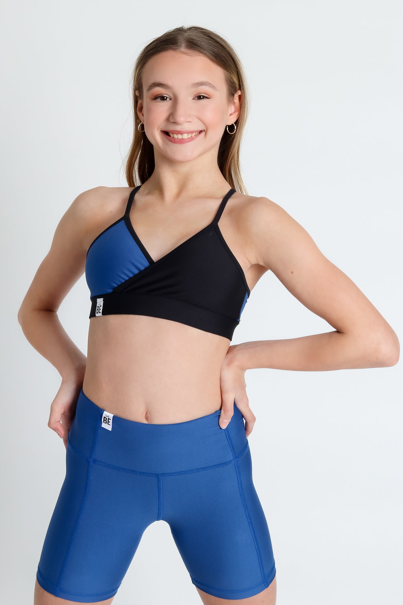 Pair your True Blue & Black Crossover Top with the BErich Inspo Leggings, BFF Shorties, or Ride or Die Bikers in blue or black.