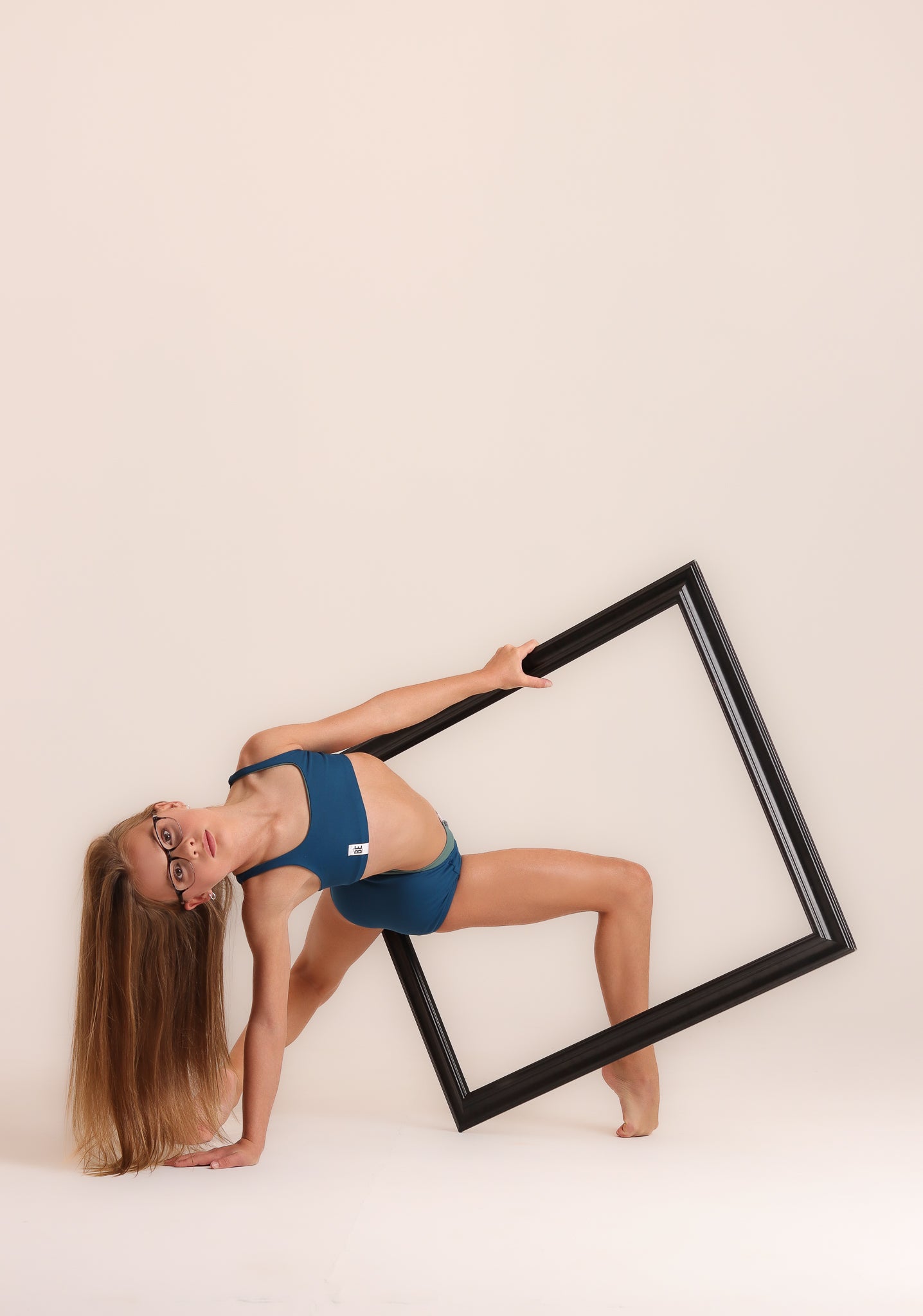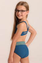 As comfortable as it is versatile, the high-waisted Peacock/Cacti BEversatile Duo Brief is ready for anything! The flattering fit is fully lined for modesty and offers squat-proof, stay-in-place coverage. Giving you yet another fabulous look to add to your dance wardrobe, the predominantly peacock blue brief features a soft elastic-free waistband made of cactus green spandex. In addition to the coordinating BEversatile Swap Top, pair your Peacock/Cacti Duo Brief with the BErefined Crop Top in the same colorways for an alternative look and ultimate flexibility.
