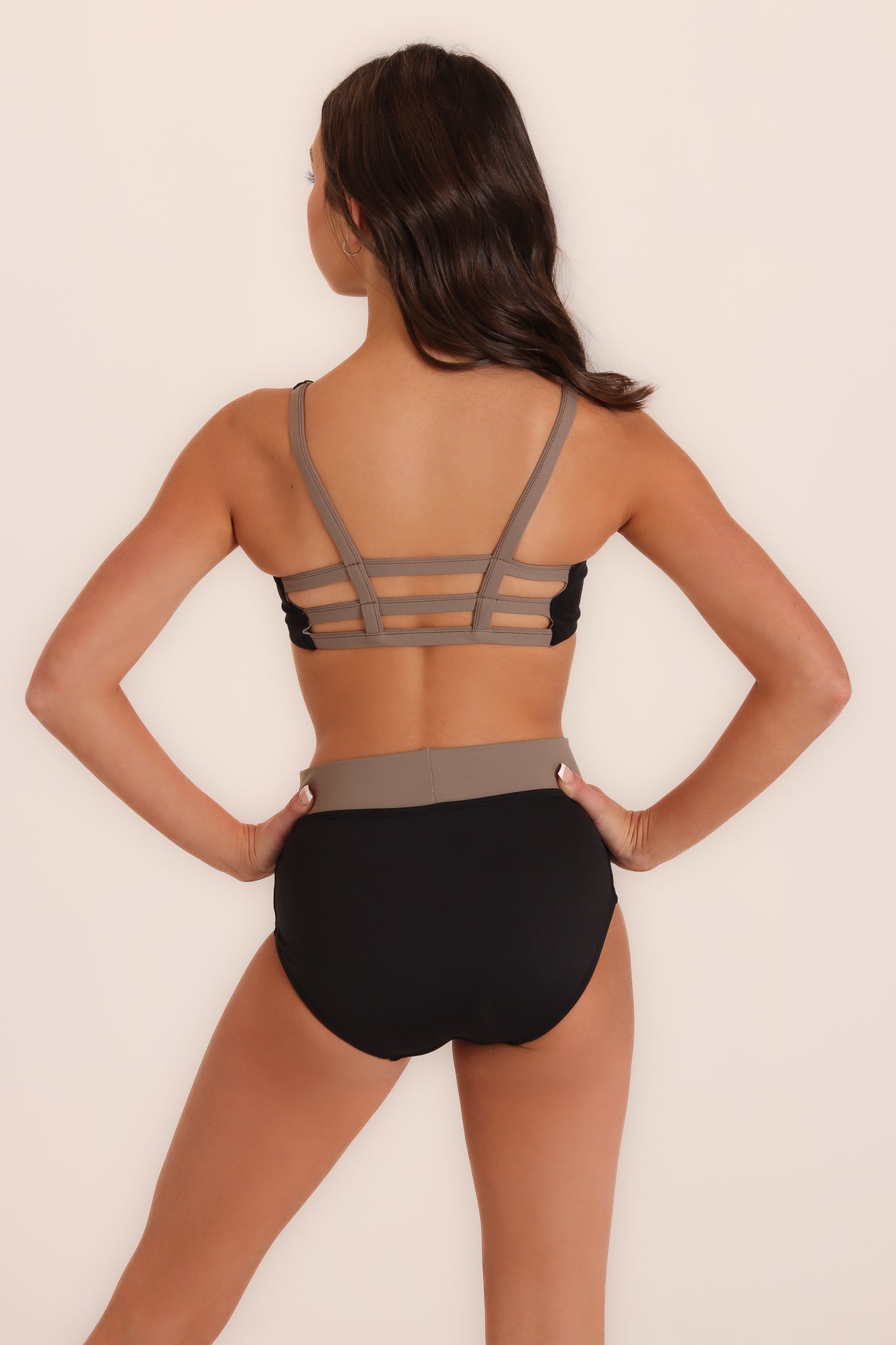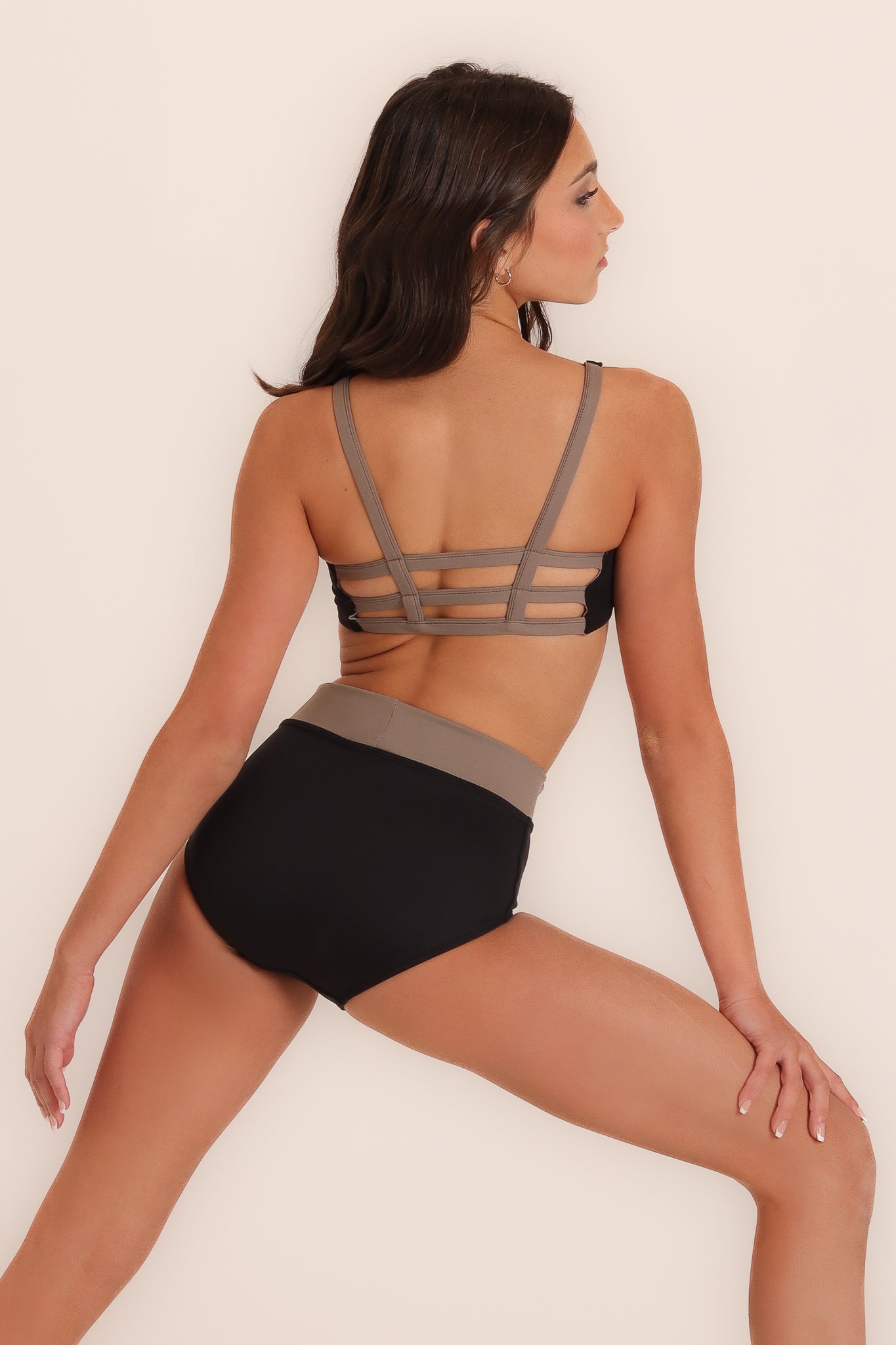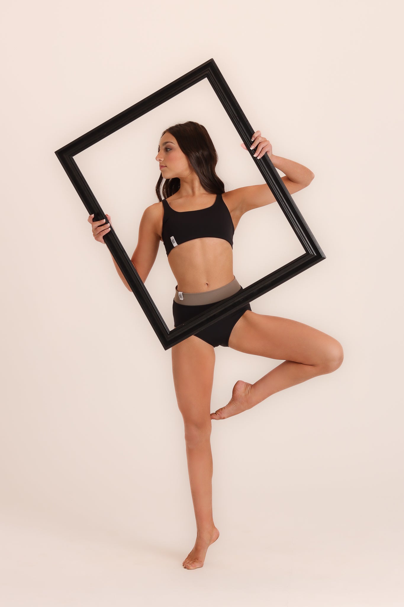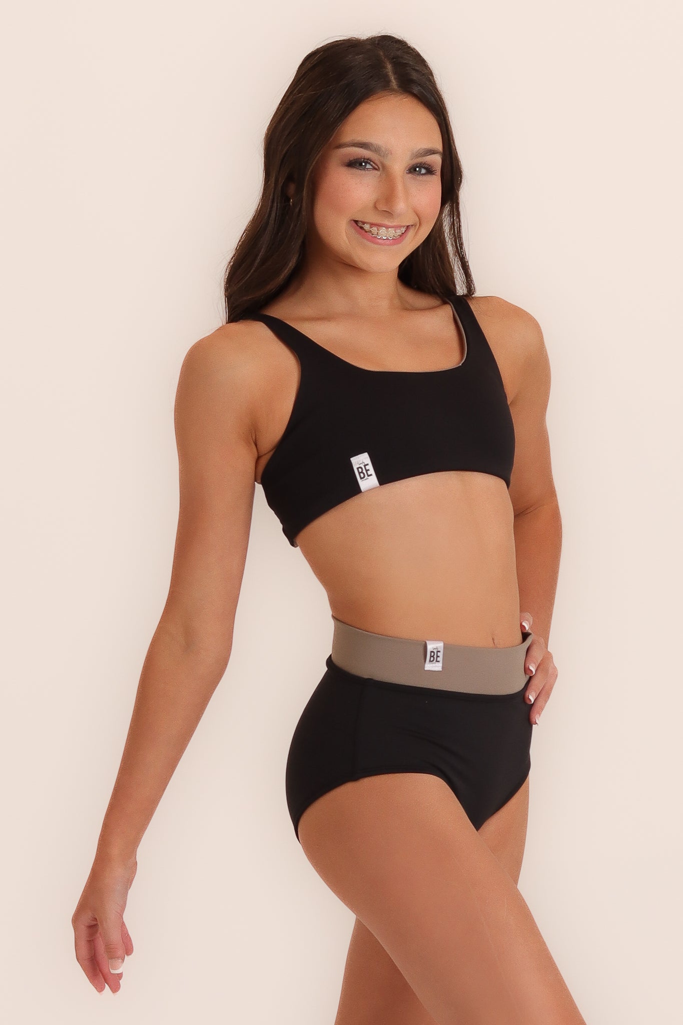 As comfortable as it is versatile, the high-waisted Sand/Black BEversatile Duo Brief is ready for anything! The flattering fit is fully lined for modesty and offers squat-proof, stay-in-place coverage. Giving you yet another fabulous look to add to your dance wardrobe, the predominantly black brief features a soft elastic-free waistband made of sand spandex. In addition to the coordinating BEversatile Swap Top, pair your Sand/Black Duo Brief with any of SimplyBE’s black dance tops for an alternative look and ultimate flexibility.