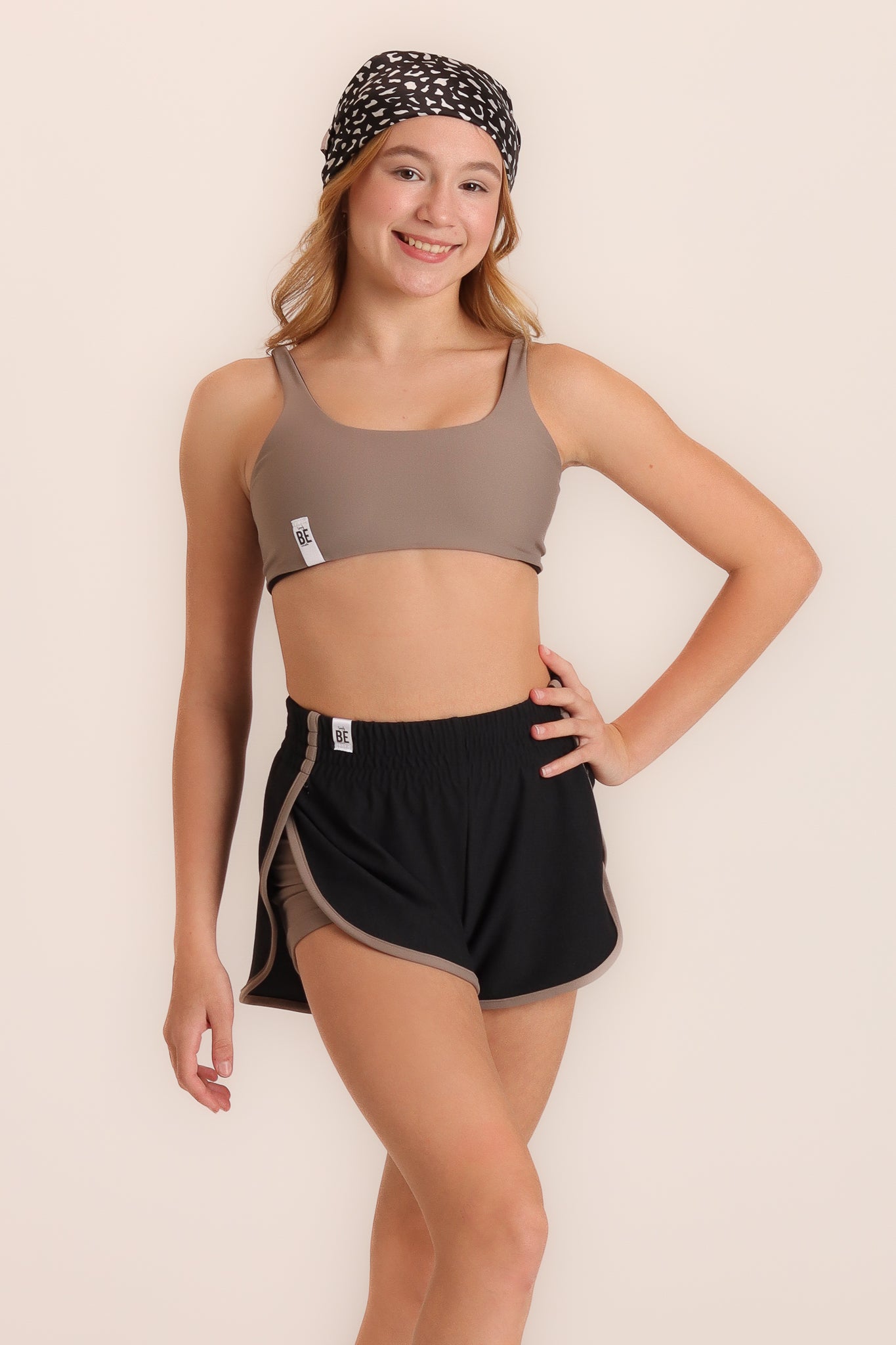 Looking for a little more coverage? The BEversatile Fighters might just be the cutest pull-on shorts ever (and they even bring a little fabric diversity to the mix). Made from textured polyester spandex, they are not only soft and cozy to the touch but will move with you in all directions. Featuring open side seams and coordinating trim, the black BEversatile Fighter Short is designed to be worn over the Sand/Black Duo Brief or the Sand Flex Short.
