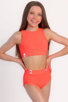 Made of polyester ribbed spandex with great stretch and recovery, BErefined booty briefs will hug you in all the right places. Pair your Electric Lemonade, Knockout Pink, or Vivid Flame booty briefs with a matching BErefined crop top or mix it up with a black CoCo Top, midnight REMIX top, or for even more versatility, a BErefined crop top in Snow. And when you need a little more coverage… add a coordinating Fighter Short, available to match all colorways.