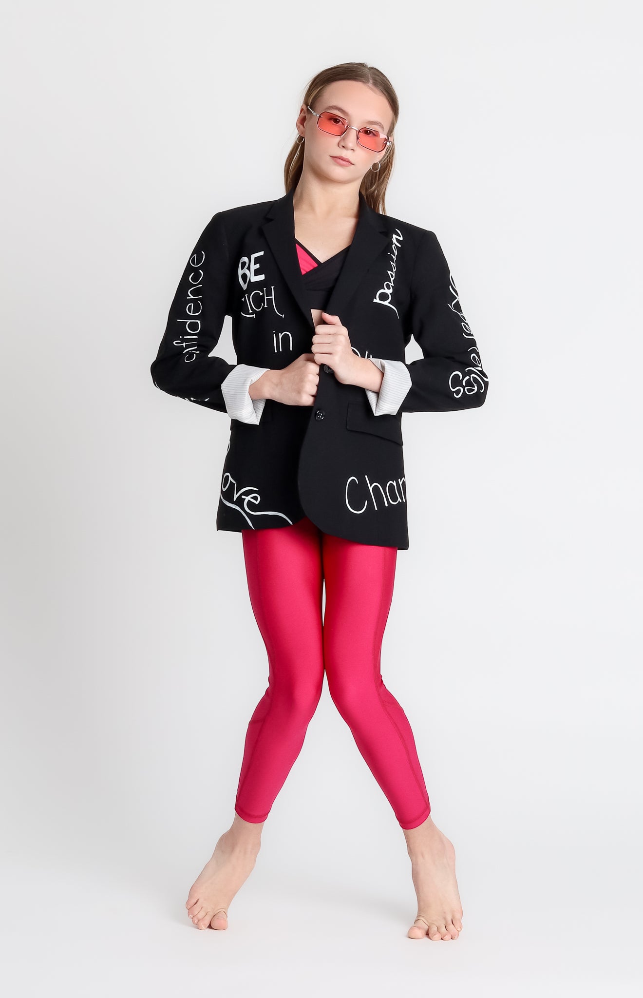Our first legging has us feeling inspired, determined, and totally in LOVE! This 7/8 length legging features a supportive high-waist, strong flatlock stitched seams, a gusseted crotch with an extra layer of protection, and worry-free opaque stretch fabric. The Inspo Legging is designed to inspire confidence, motivation, and determination in dancers of all ages, shapes, and sizes.