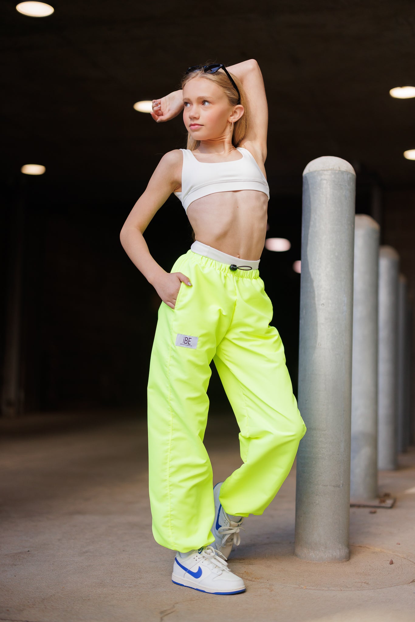 The BEessential Hype Pant is where dancewear meets streetwear — bold, functional, and effortlessly cool. Designed for dancers who never stop moving, these lightweight, durable pants feature a baggy, wide-leg fit with adjustable bungee cords at both the waist and leg openings, so you can wear them cinched or wide for a look that’s all your own. Perfect for quick changes between studio classes or on convention days, they pull on easily over any outfit and move with you through every gritty combo. Available in three bright, statement-making colors and two versatile neutrals, the Hype Pant lets every dancer express their personal vibe while staying performance-ready. The ultimate must-have for every dancer’s wardrobe — equal parts comfort, confidence, and cool.