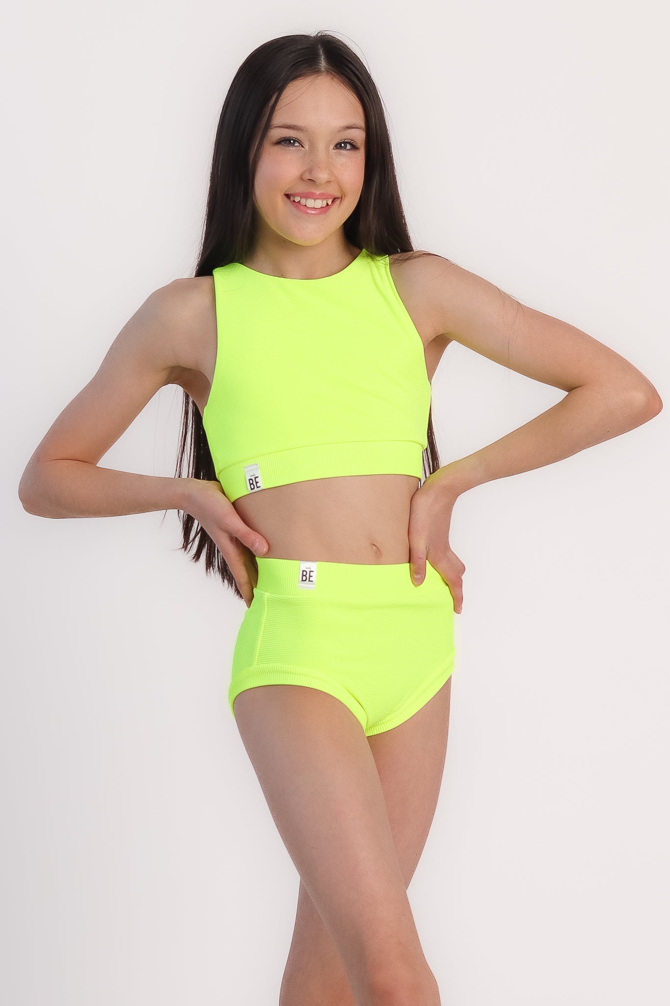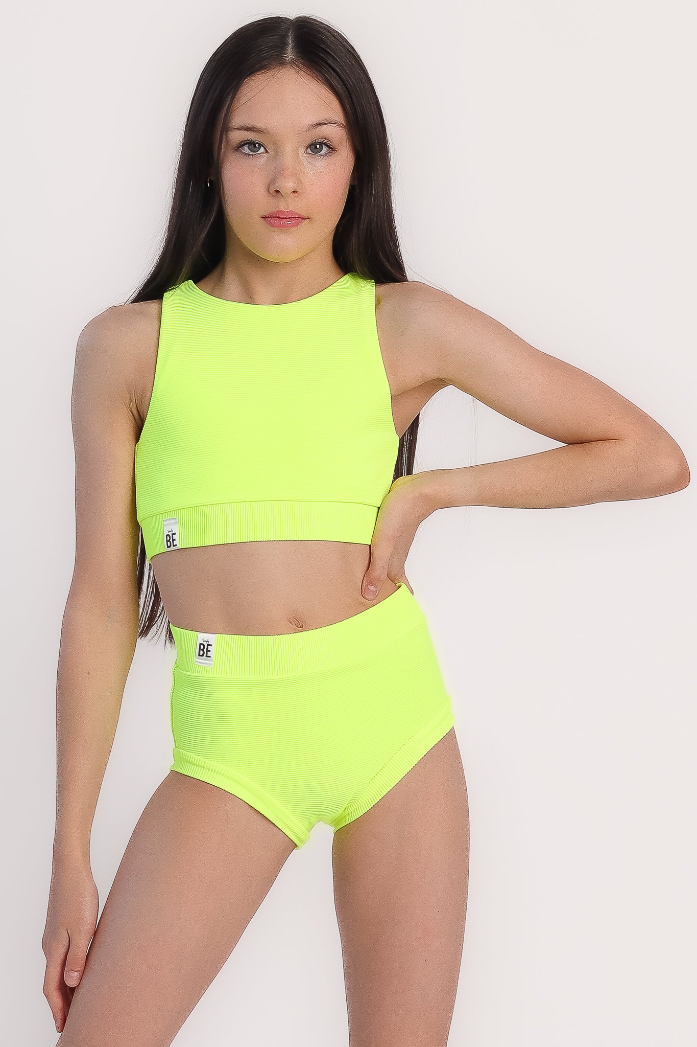 Made of polyester ribbed spandex with great stretch and recovery, BErefined booty briefs will hug you in all the right places. Pair your Electric Lemonade, Knockout Pink, or Vivid Flame booty briefs with a matching BErefined crop top or mix it up with a black CoCo Top, midnight REMIX top, or for even more versatility, a BErefined crop top in Snow. And when you need a little more coverage… add a coordinating Fighter Short, available to match all colorways.
